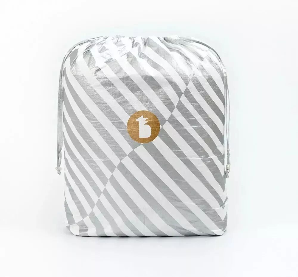 Tyvek® 材料比纸张更轻盈,却坚韧有质感,光滑不掉屑,用做床上用品的包装,可以很好地阻隔外界灰尘,确保使用者的健康。菠萝斑马床上亚麻四件套包装袋在Tyvek® 上印上金色Logo,再配上银色条纹,彰显大气。
