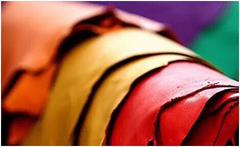 经过众多工序筛选好的皮革通过各种处理染色后,被剪裁成数十张和手袋各部件形状大小相当的小块皮子。