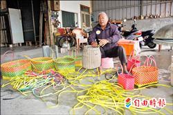 林金山说,编织手工艺是早年农村妇女必备才艺,甚至是女孩子能否嫁得如意郎君重要条件。小时候在耳儒目染下学会,除编绳篮外,他还会替儿孙们编织便当套、枕头套等,让孩子们感受老阿公贴心的关怀。