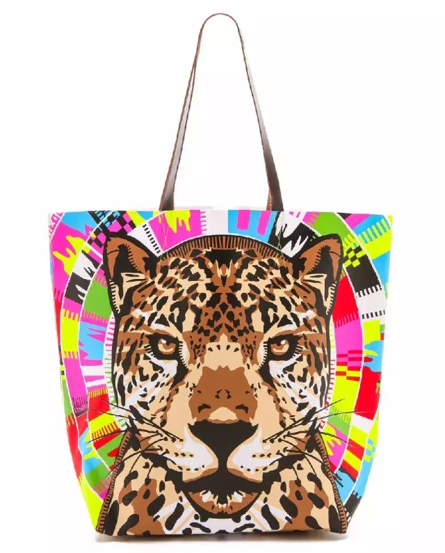 这款结实 Mara Hoffman 海滩包采用醒目美洲豹印花和荧光色细节设计,带来夺睛外观,提手采用柔软皮革制成,背上它,性感可爱全有了~你绝对万众瞩目~!