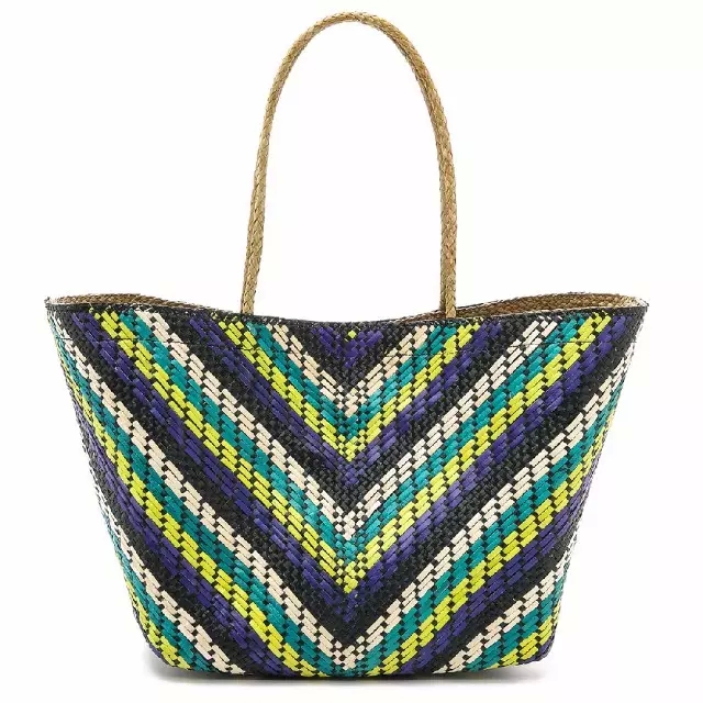 Banago,Shopbop 旗下 ONE by 系列精选品牌,因其别致的岛屿风格和精湛的手工艺配饰闻名~ ONE by 汇聚了知名设计师和新晋设计师的杰出单品。这款宽松 Banago 海滩风手提袋采用彩色线条塑造出醒目 V 型。 细提手抓牢袋体,磁性按扣扣紧顶部。