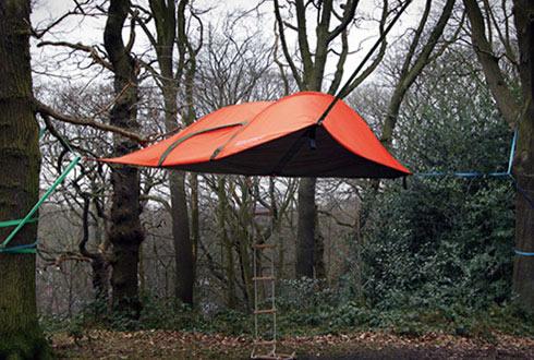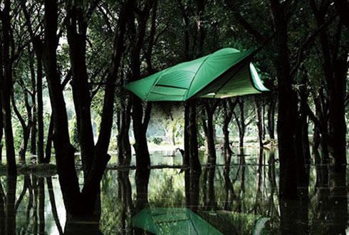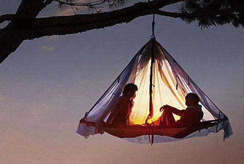 看看这款帐篷,给人一种悬浮在空中的错觉。该帐篷通过高强度的绳索吊在四周的树杆上,乍一看起来像吊床,既安全又保证了隐私。此外,这款帐篷还附加了一个绳梯,这样的话你在晚上仍然可以顺畅地爬进帐篷。