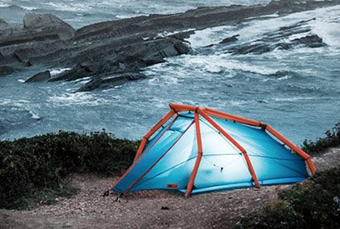 这款帐篷的支撑结构是一种“充气梁”,你可以在一分钟之内给帐篷充满气,将其支起来。