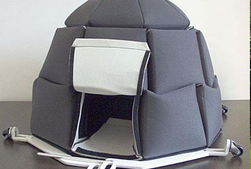 上面那款透明的塑料帐篷是否让你觉得它不够结实耐用?不要紧,这款用防水材料做成的帐篷,它由一片片厚实的衬料组成,在寒冷的冬夜里,住在这款帐篷里仍然能感到暖和。