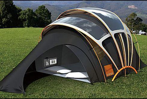 近年来,帐篷设计潮流越发趋向绿色环保。这款帐篷设计前卫,装有WiFi链接装置、太阳能电池板和照明系统。